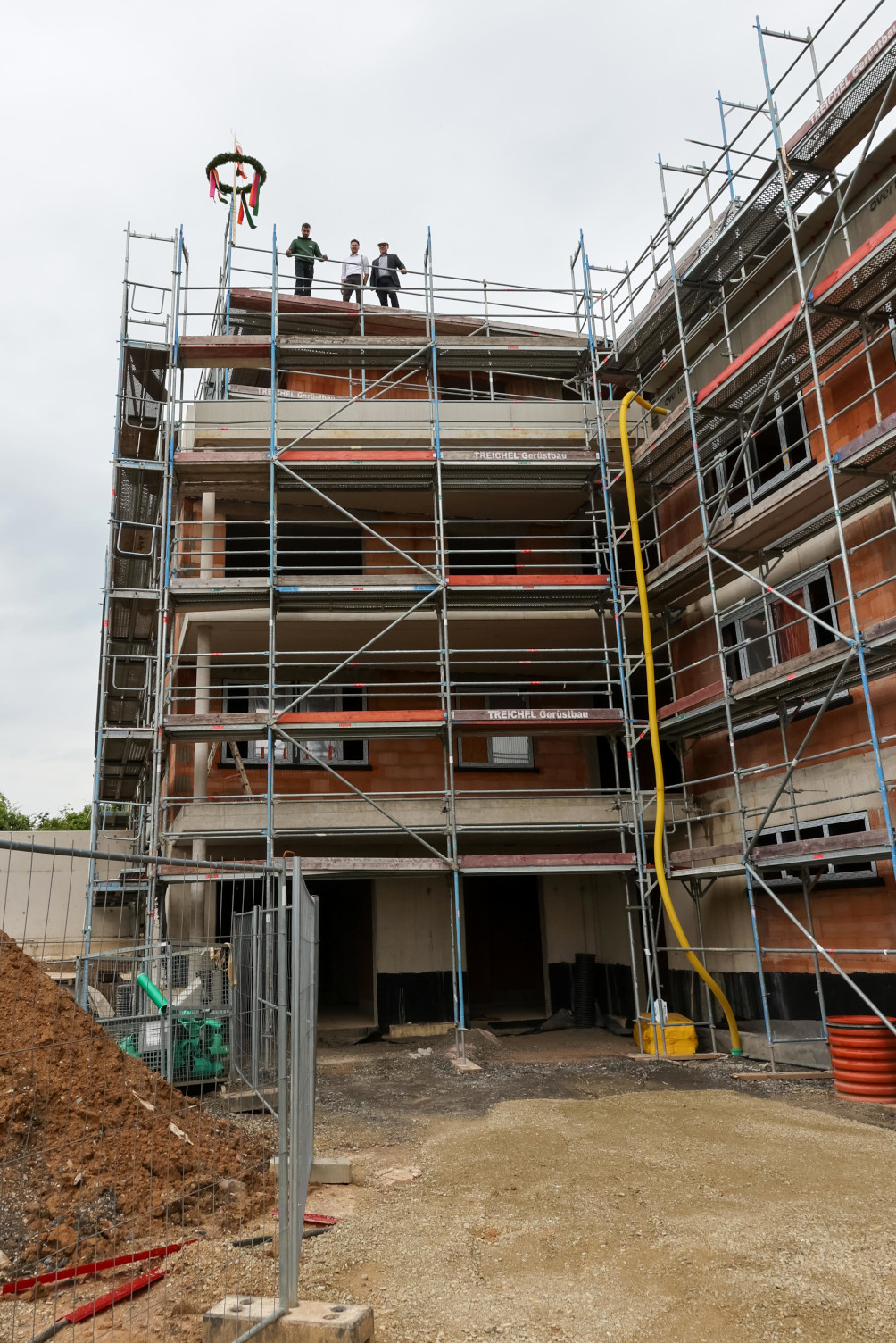 Auch Landrat Dirk Adomat, Bürgermeister Tarik Oenelcin, Ortsbürgermeister Michael Kipp und Heimbeirat Karl-Peter Kullak richteten Worte an die Teilnehmenden. Die Fertigstellung schreite voran, es sei schön, zu sehen, was sich in den letzten Monaten entwickelt habe, so Oenelcin. Adomat, der selbst in Fischbeck wohnt, lobte die stets gute Zusammenarbeit mit allen am Projekt Beteiligten. Kipp hob die Bedeutung des starken Miteinanders hervor, wenn Menschen mit und ohne Behinderung regelmäßig gemeinsam die Hunderunde spazieren oder zusammen Weihnachten feiern. Die Redner wünschten allen Mitwirkenden, allen voran den Bauschaffenden, ein stets gutes Gelingen. Weiterhin sehen sie der Eröffnung des Neubaus im Sommer 2026 mit Vorfreude entgegen.